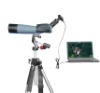 1.3MP USB Digital Zoom Spotting-scope is a digital compound spottingscope, composed of a 1.3MP USB digital camera and a traditional spottingscope. A special desing adapter with built in matching optical system functions as a bridge to have the images captured by spottingscope be focused on the chip surface of sensor module, and shown on PC for public view or saved. A 10 meter USB2.0 cable is usually attached to insure that there is enough distance between you and the spottingscope, even more person can hide behind a shell, thus the bird singing on branch will not be interfered. Digital Zoom Spotting-scope is applied by scientist and amateur to shoot and video bird for further research or just fun.FeatureObjective diameter80.00 mmEyepiece diameter44.00 mmOptical zoom20X---60XShutter functionSoftware controlCorrecting image Software controlBacklighting reduceSoftware controlFunction of softwareImage managementset up, open up, save, lead in image fileImage capture: switch, setting, shoot,, full screen view.Image edit: picture turn, zoom, cut, modify, email, printSpecificationsSensor parameter1/2" 1.3 MP CMOSMax resolution1280*1024USB port USB2.0, 480 MB /sRate of frame16 f/s @ 1280*1024Preview model1280*1024, 640*480, 320*240Pixel size5.2μm *5.2μmSensitivity 1.8 V/lux-sec@550nmSpectrum response 400nm---1000nmShutter typeERS(electronic rolling shutter)White balanceAuto / manualO/P compatibilityWindows--XP2,Vista
